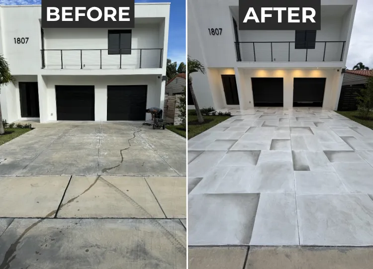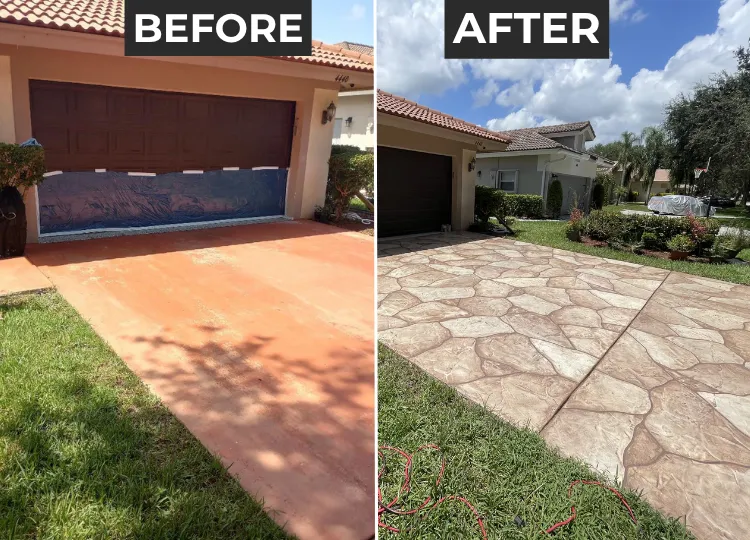 Durable, decorative concrete resurfacing built for South Florida sun, salt, and rain, at a fraction of replacement cost.