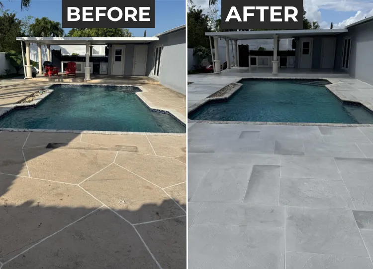 Absolutely. We resurface driveways, pool decks, patios, walkways, and garage floors. Our coatings are slip-resistant and designed to perform well in South Florida’s heat and weather conditions.
